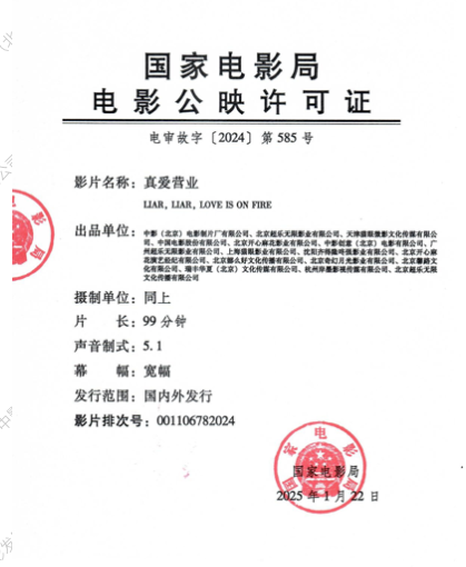 关于影片《真爱营业》保留拷贝的通知