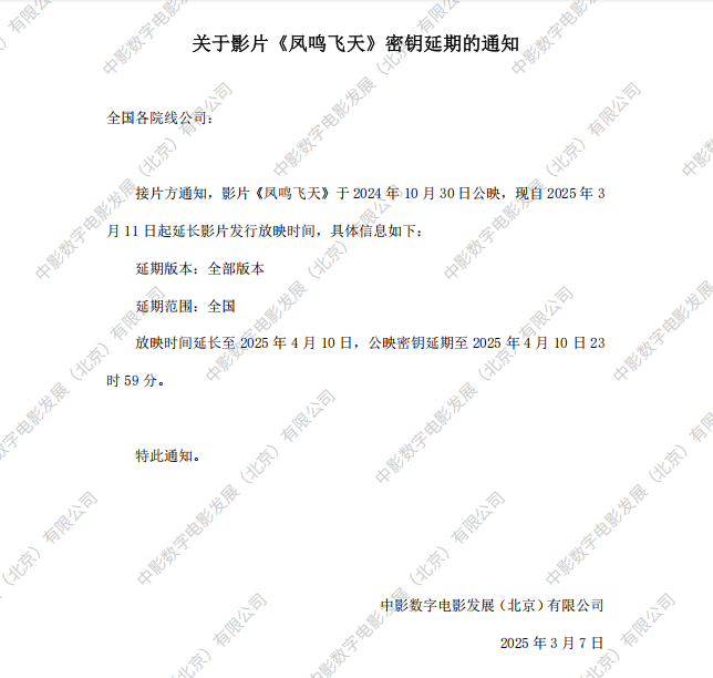 《凤鸣飞天》第二次密钥延期的通知