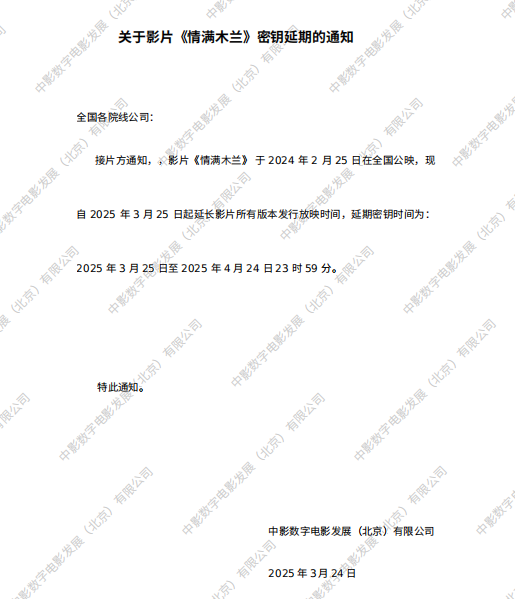 《情满木兰》第九次密钥延期的通知