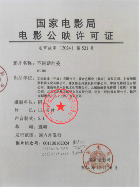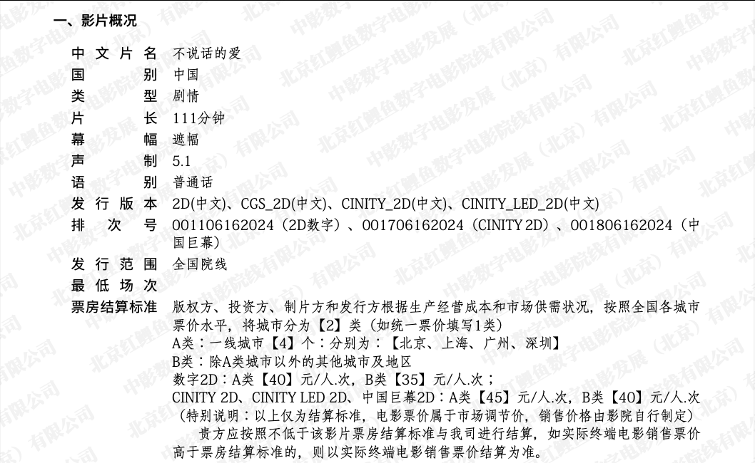 《不说话的爱》密钥延期及票房结算标准调整的通知