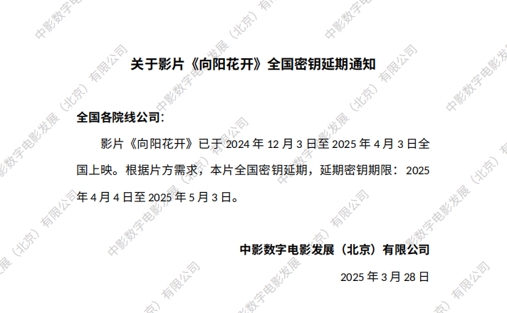 关于影片《向阳花开》全国密钥延期通知 (2)