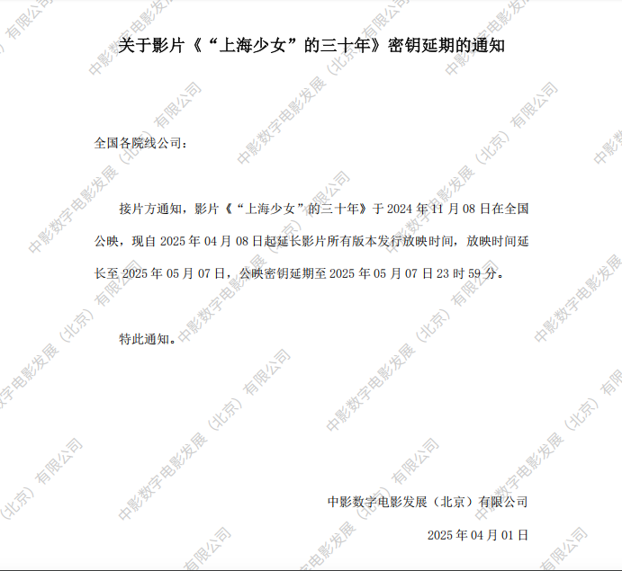 《“上海少女”的三十年》第十四次密钥延期的通知