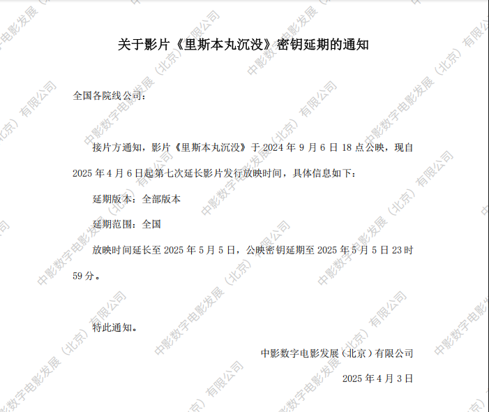 《里斯本丸沉没》第十二次密钥延期的通知