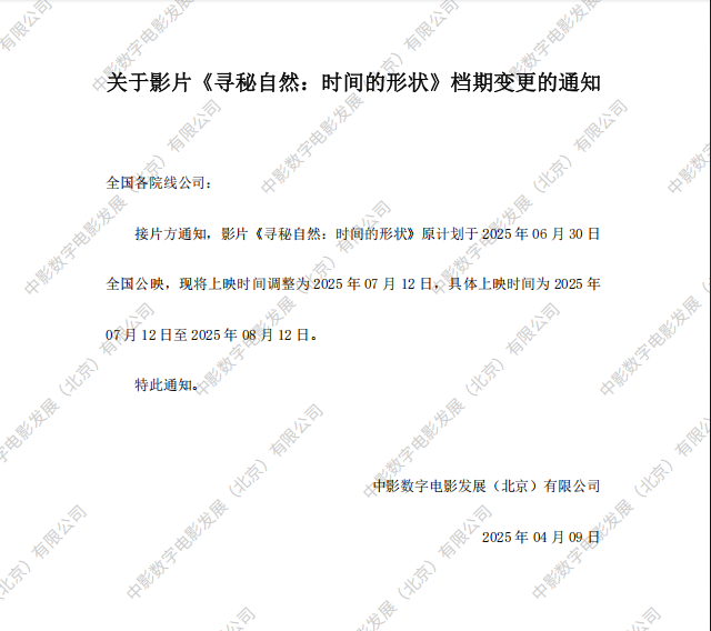 关于影片《寻秘自然:时间的形状》密钥延期的通知