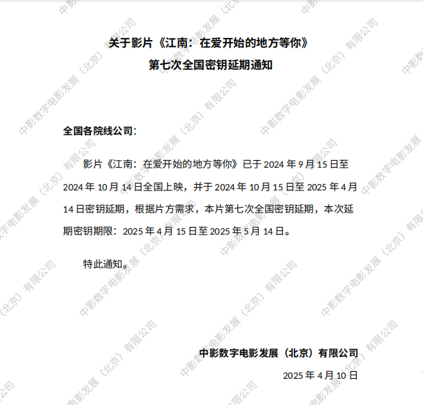 《江南:在爱开始的地方等你》第四次全国密钥延期的通知