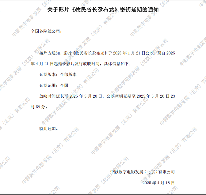 《牧民省长尕布龙》第九次密钥延期的通知