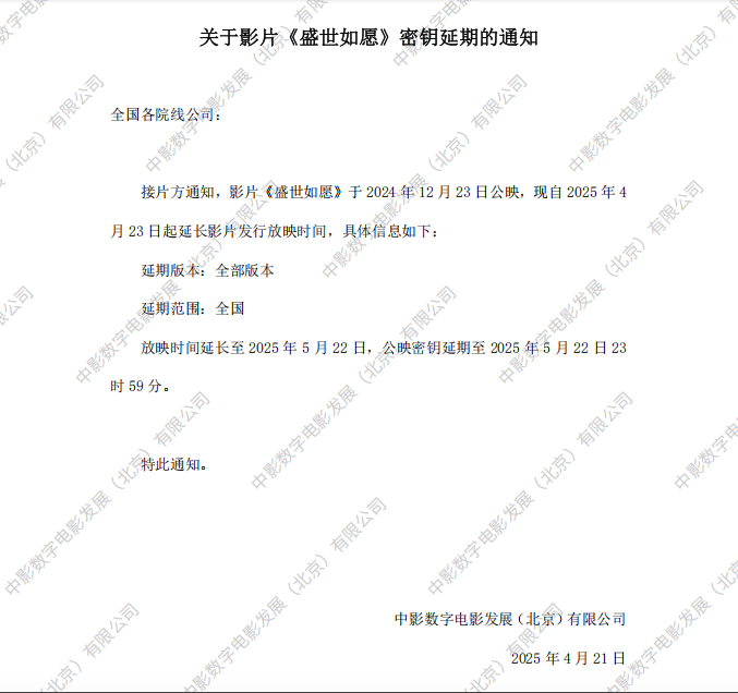 《盛世如愿》第十次密钥延期的通知