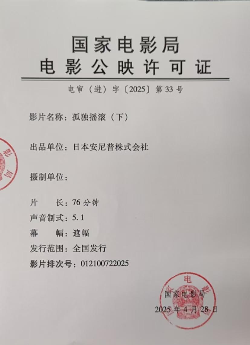 数字版影片《孤独摇滚(下)》发行通知(第一次密钥延期至2025年7月9日)