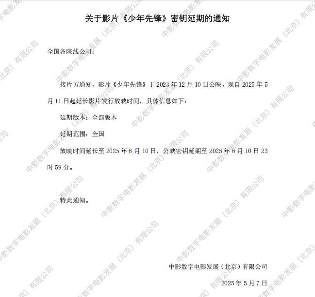 《少年先锋》第十六次密钥延期的通知