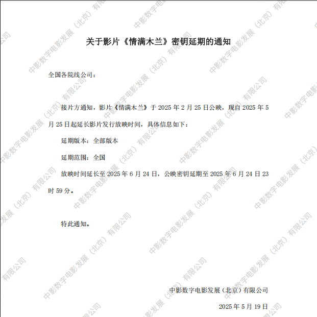 《情满木兰》第六次密钥延期的通知
