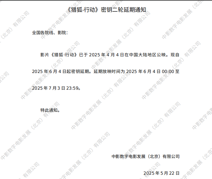 《猎狐·行动》密钥延期的通知