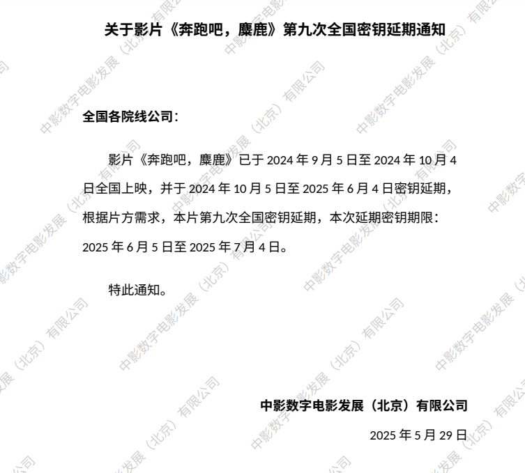 《奔跑吧,麋鹿》第十一次全国密钥延期的通知