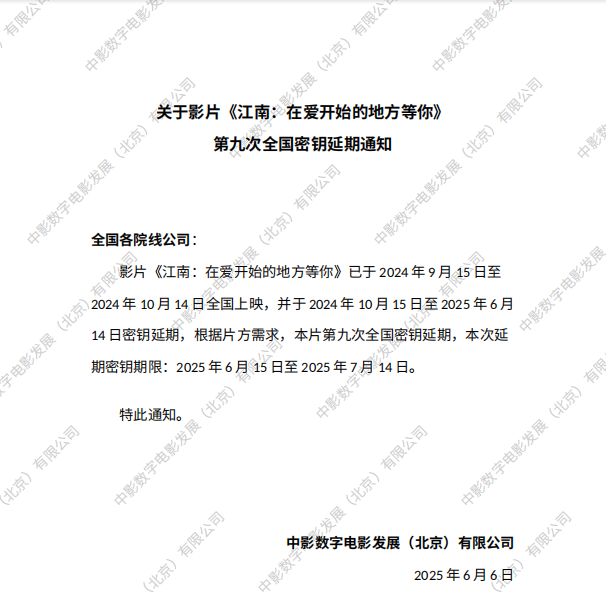 《江南:在爱开始的地方等你》第六次全国密钥延期的通知