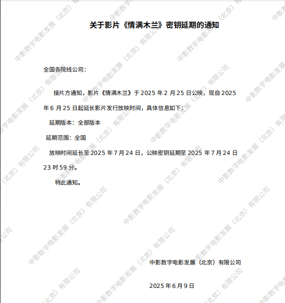 《情满木兰》第九次密钥延期的通知