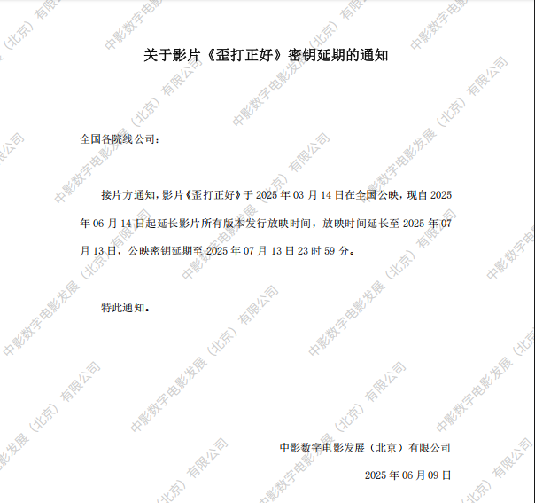 《歪打正好》第二次密钥延期的通知