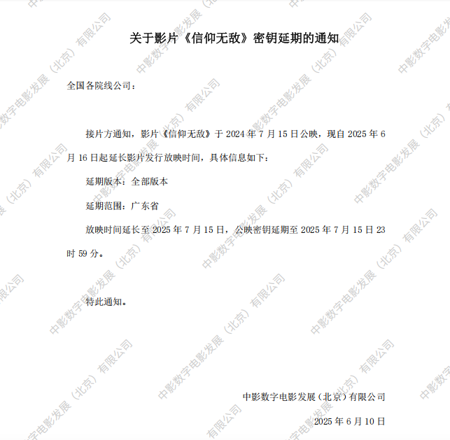 《信仰无敌》第十二次密钥延期通知