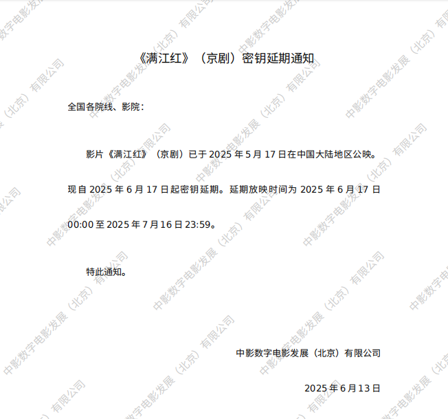 发行通知 » 《满江红(京剧)》密钥延期的通知