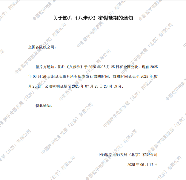 《八步沙》第三次密钥延期的通知
