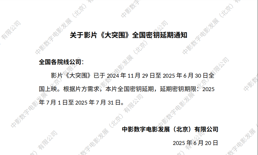《大突围》调整票房结算标准的通知