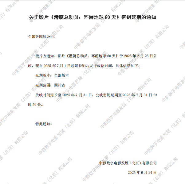 《潜艇总动员:环游地球80天》第六次密钥延期的通知