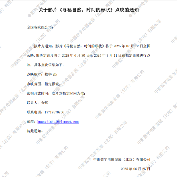 关于影片《寻秘自然:时间的形状》3次密钥延期的通知