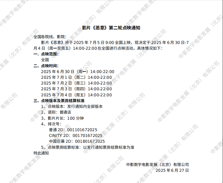 《恶意》点映的通知
