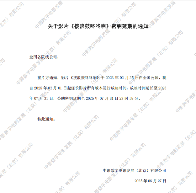 《拨浪鼓咚咚响》第三十一次密钥延期的通知