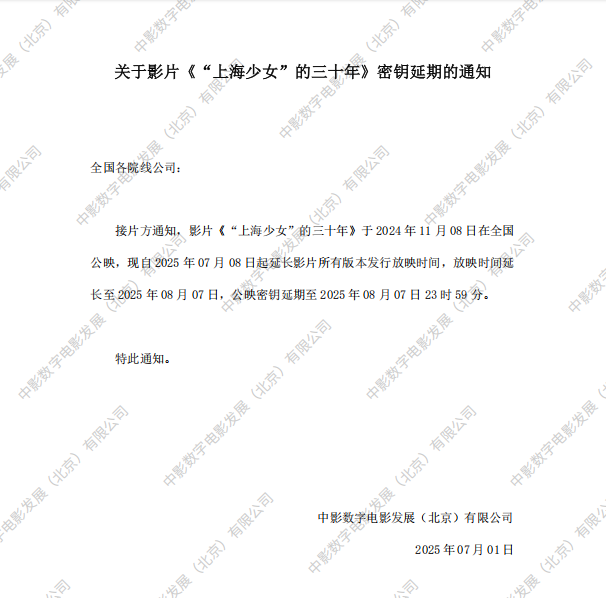《“上海少女”的三十年》第十四次密钥延期的通知