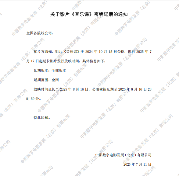 《音乐课》第十二次密钥延期的通知