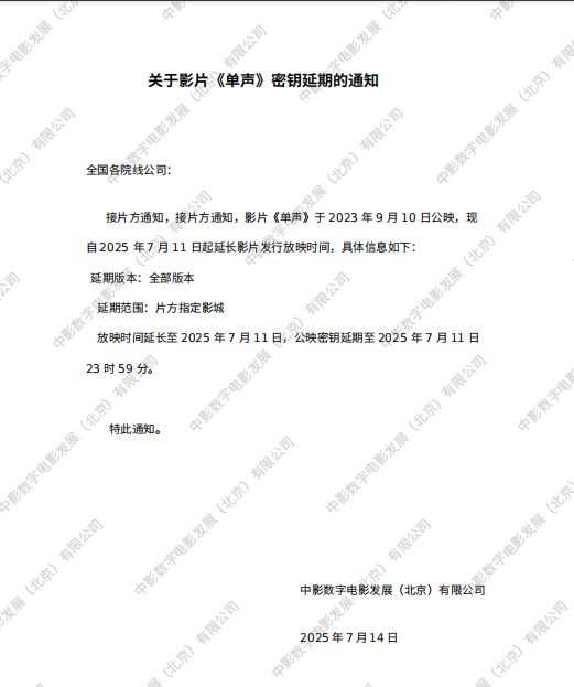 《单声》第二十五次密钥延期的通知