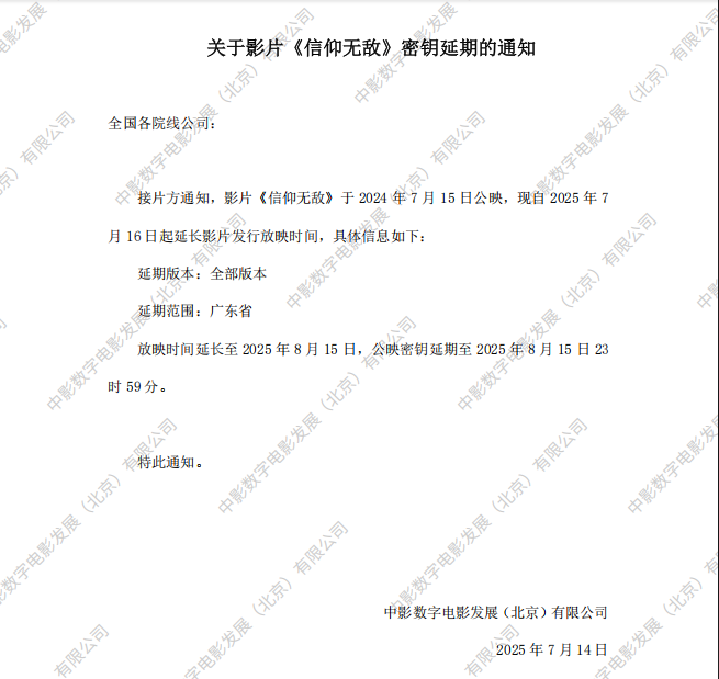 《信仰无敌》第十六次密钥延期通知
