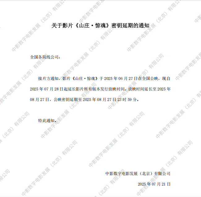 《山庄·惊魂》第二次密钥延期的通知