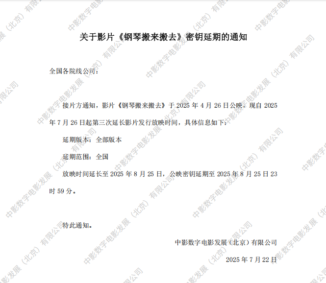 发行通知 » 《钢琴搬来搬去》第三次密钥延期的通知