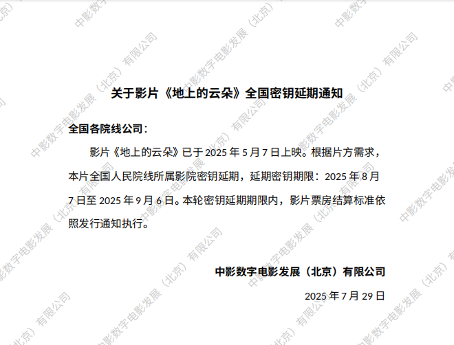关于影片《地上的云朵》全国密钥延期通知