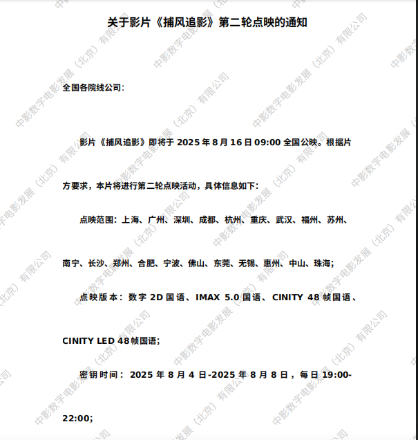 《捕风追影》第六轮点映的通知