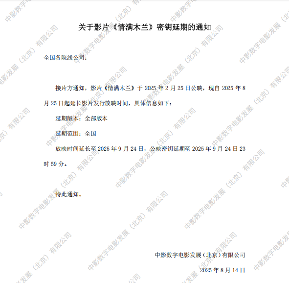 《情满木兰》第四次密钥延期的通知