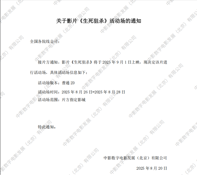 发行通知 » 《生死狙杀》活动场的通知