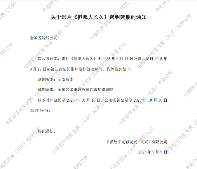 《但愿人长久》第二次密钥延期的通知