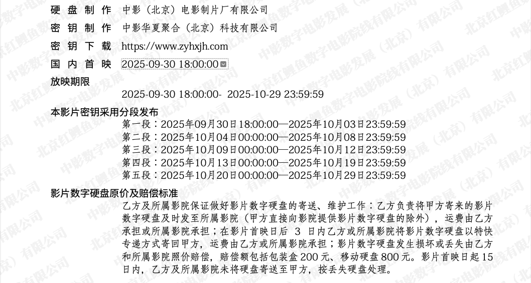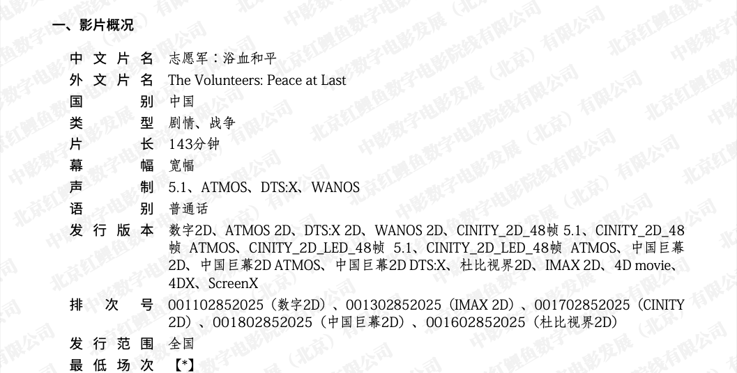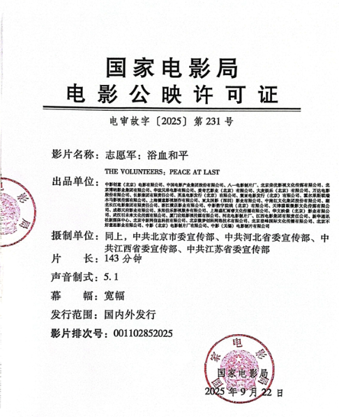关于影片《志愿军:浴血和平》调整结算标准的通知