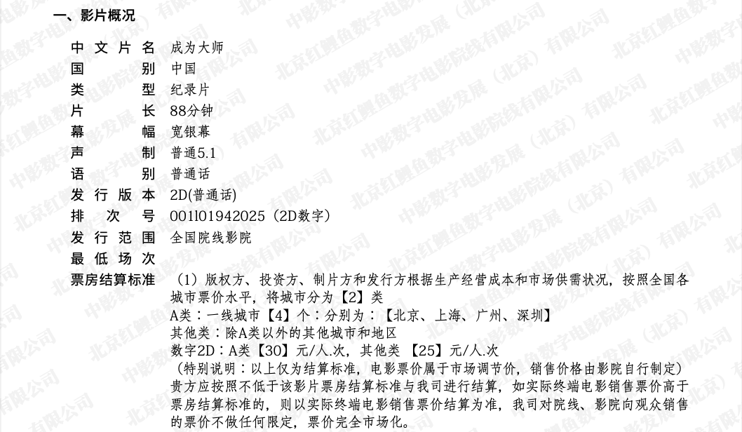 《成为大师》调整票房结算标准的通知