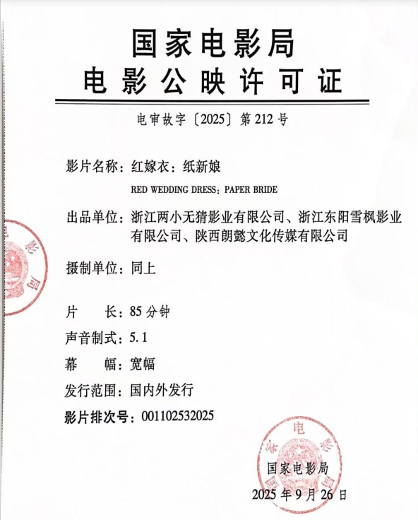 关于影片《红嫁衣》2次密钥延期的通知