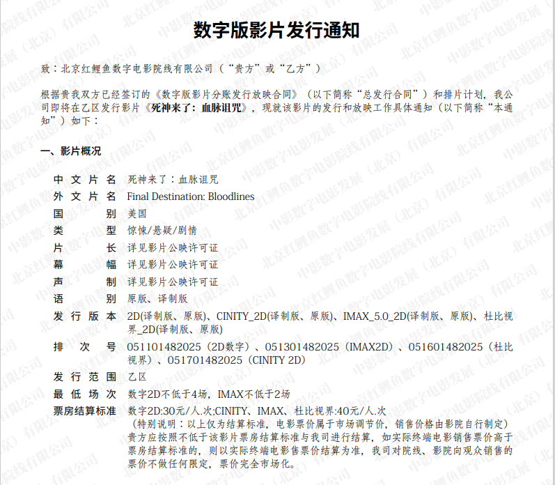 《死神来了:血脉诅咒》发行通知(第二次延期)