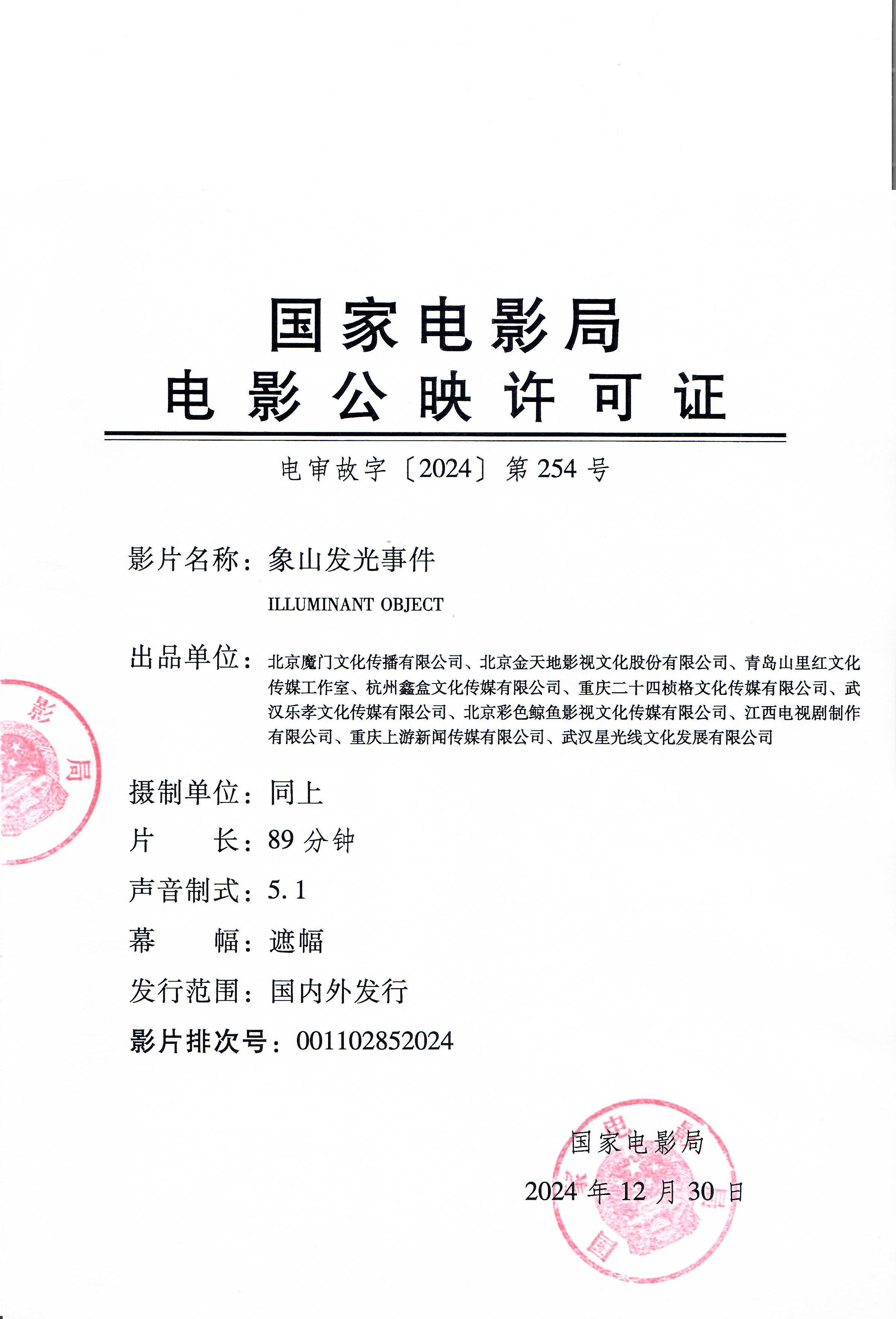 《象山发光事件》点映的通知