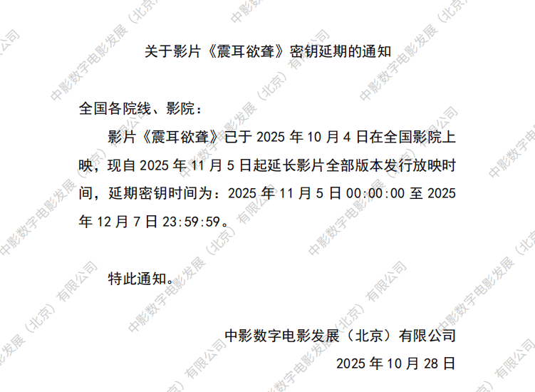 关于影片《震耳欲聋》调整票房结算标准的通知