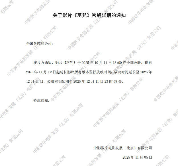 《巫咒》全国点映的通知