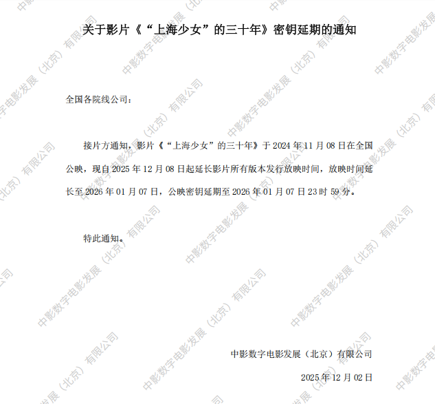 《“上海少女”的三十年》第十四次密钥延期的通知