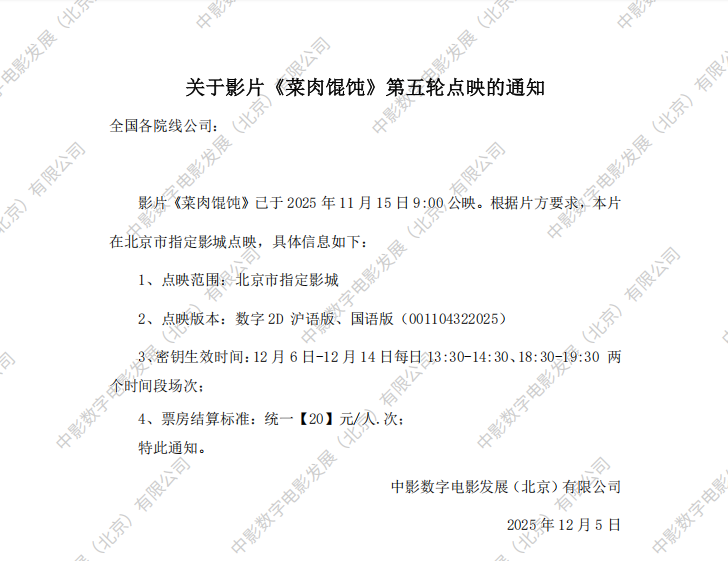 《菜肉馄饨》密钥延期及调整发行范围的通知