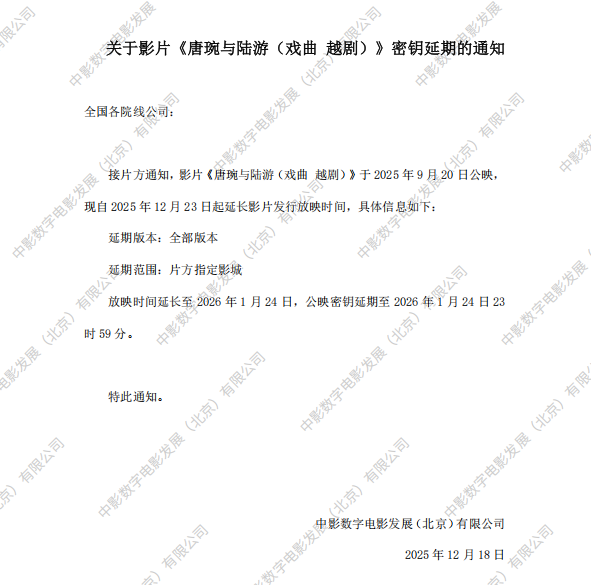 《李贞还乡(戏曲 湘剧)》第三次密钥延期的通知