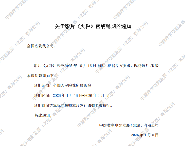 《火种》第二次密钥延期的通知