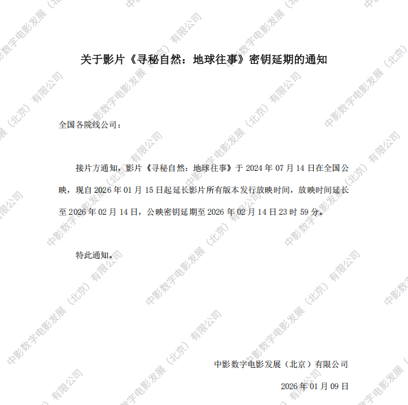 关于影片《寻秘自然:地球往事》15次密钥延期的通知